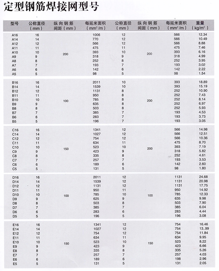 定型鋼筋焊接網型號